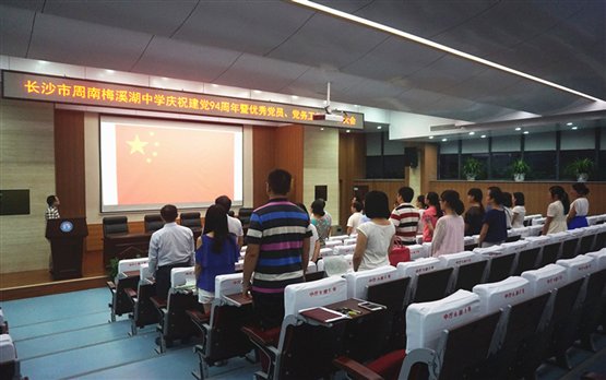 随后,曹共平书记作重要讲话,他和全体党员一起回顾了党94年的光辉历程,并对党员提出了三点要求:“一是要牢记党员身份,强化党性修养,永葆对党忠诚。二是要牢记教师身份,强化职业修养,做“四好”教师。三是要牢记公民身份,强化道德修养,做学生道德的楷模”。他希望广大党员要站在科学发展的角度,牢记使命,坚定信心,开拓创新,精诚团结,尽职尽责,以更加饱满的热情、更加务实的作风,努力开创周南梅溪湖中学发展的新局面。
