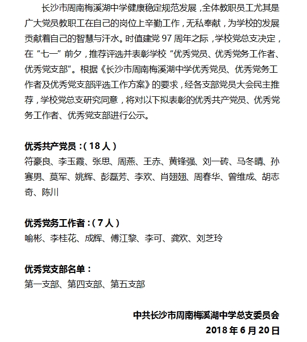 中共银河国际总支委员会 关于2018年党内拟评优表彰对象的公示