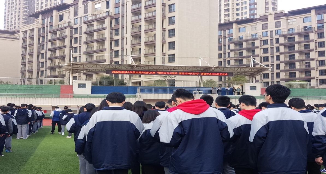 男:周南梅溪湖中学第三周升旗仪式暨“雷锋家乡学雷锋,雷锋精神代代传”道德传承活动启动仪式,现在开始!