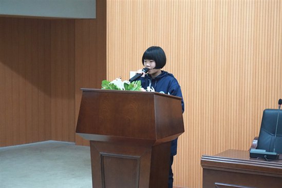 C1410班的骆桑芷向我们诉说了在禁毒学校发现的真实的图片、鲜活的事例和一个个血淋淋的故事,说到最后她向同学们呼吁“我们无需害怕,无需担心,我们要做的就是擦亮眼睛,不受别人的诱惑,敢于同毒品犯罪作斗争!”