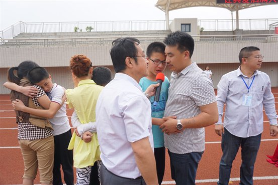 他从“感恩祖国”、“感恩父母”、“感恩老师”三个方面进行了激情洋溢的演讲,并在现场开展了学生、家长及老师的互动环节,当孩子们饱含泪水、发自肺腑地呼喊:“我爱爸爸,我爱妈妈,我爱老师”,在场的家长和老师们不禁热泪盈眶。在近两个小时的报告会上,董老师用一个个生动的案例,深入浅出,诠释感恩的主题。让人无比感动的是,在董老师引导下,孩子们怀着感恩的心,握住家长的手,向自己的父母鞠躬,与爷爷奶奶拥抱,说出了埋在心底已久、但又一直没有说出口的心里话;不少孩子紧紧拥抱自己的老师,向老师诚恳地表达自己的心声;而在场的家长也与老师亲切握手,表达了对老师深深的感谢之情。会后同学们纷纷表示,以后要更爱生养自己的父母,更爱启迪自己智慧的老师。