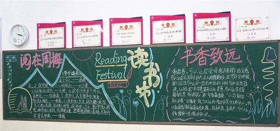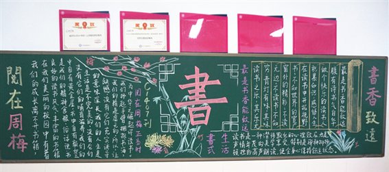 继我校首届读书节第一场活动——“校园名人行”之后,各班开始了以“阅在周梅,书香致远”为主题的黑板报设计。同学们积极动手,精心设计、排版,尽现出绘画、书写之能事。黑板报内容涉及名人读书故事、读书方法、经典名言等。同学们利用教室板报这一宣传阵地,激发了师生们读书的兴趣,营造出积极向上的校园书香文化氛围。5月8日,学校活动组成员进行了评选。