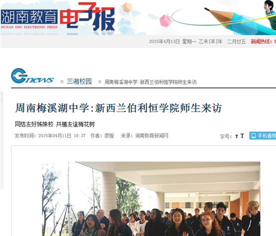 此前新西兰伯利恒学院在周南梅溪湖中学已开展了交流学习、共植友谊树等多项活动。