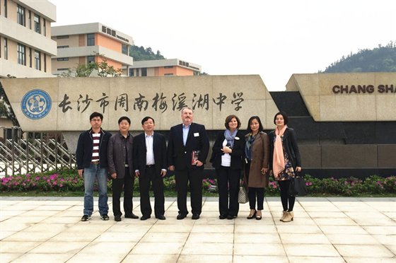 15日,长沙周南梅溪湖中学缔结国外名校,美国华盛顿学院(Washington Academy)校长及招生官对周南梅溪湖中学进行友好访问,并正式签约成为友好学校,拉开两校交流的序幕。长沙市教育局宣统处处长王本蛟、国际交流处周卓莹主任参加签约仪式。