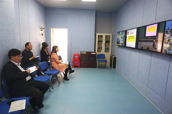 叶双秋校长认为曾老师的课堂结构清晰,以学生邮件导入和回复学生邮件结尾,前后照应,设计新颖;唐老师基本功扎实,语言表达流畅。并针对这两堂课提出具体建议:政治课堂应有恰当的板书,“毕竟PPT不能代替板书。”地理课自主学习部分应把学生的探究结果用实物展台展示,了解重难点是否落实。