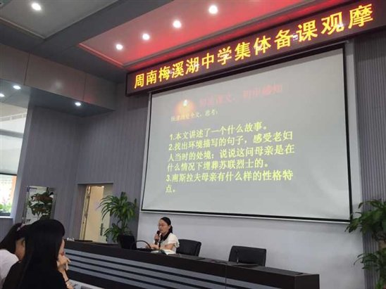 此次教研活动进行中,周梅教师们学习态度诚恳,教研氛围浓郁,有些老师中途有课不得已离开会场,下课后又急忙赶回,不想错过学习交流的机会。初一语文组备课组长吴伟娥表示,通过观摩初二年级的集体备课,他们对周梅的集体备课模式有了更加深刻的认识,“这种认真、深入、唯实的作风值得我们学习,以后一定沿用这种模式,使教学更加扎实、有效。”