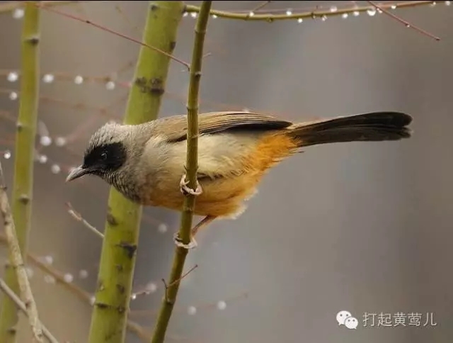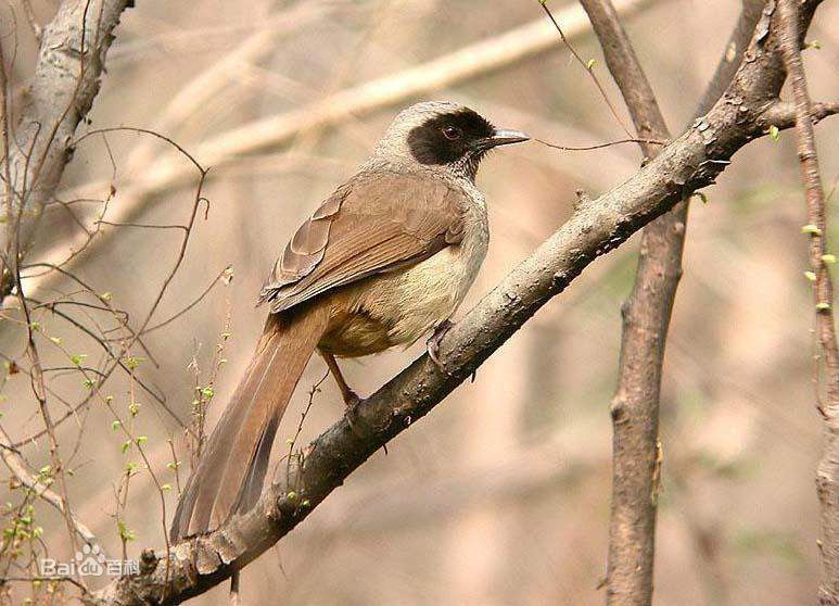 黑脸噪鹛(学名:Garrulax perspicillatus):中型鸟类,体长27-32cm。头顶至后颈褐灰色,额、眼先、眼周、颊、耳羽黑色,形成一条围绕额部至头侧的宽阔黑带,状如戴的一副黑色眼镜,极为醒目、好认。背暗灰褐色。颏、喉褐灰色,胸、腹棕白色,尾下覆羽棕黄色。鸣声响亮,单调而粗涩。