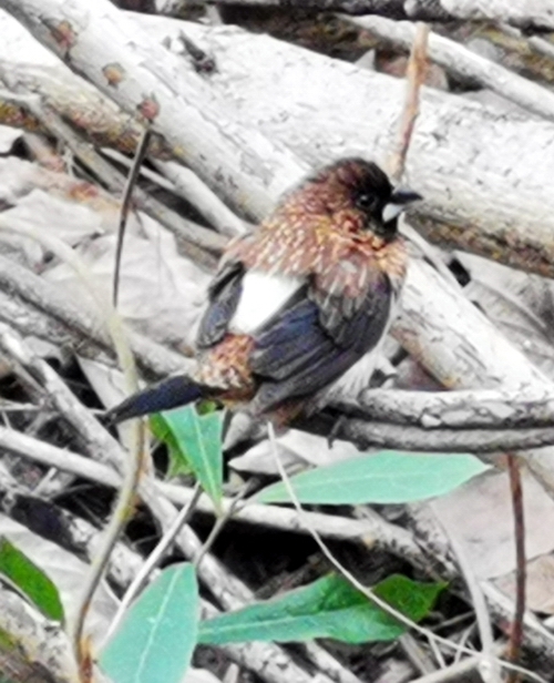 在长沙黑麋峰观鸟时,见到白腰文鸟拖着长长的白线,仔细观察,原来它是咬断、衔取浅色的枯草,反反复复,飞往一棵不太高的树的树枝中做巢。
