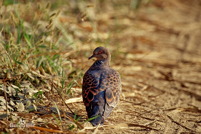 与珠颈斑鸠一样常见。最明显的区别在于,山斑鸠颈的两侧,各有一块羽缘为蓝灰色的黑羽,形成显著黑灰色条纹颈斑;而珠颈斑鸠颈后部为一片黑地白斑花纹。山斑鸠被列入国家三有保护鸟类。
