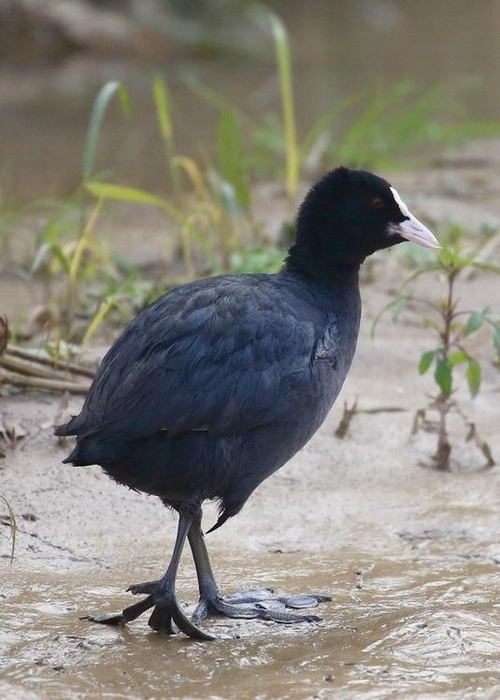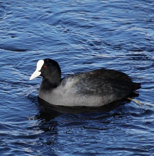 白骨顶(学名:Fulica atra),也称白骨顶鸡、骨顶鸡,属鹤形目秧鸡科的鸟类。嘴长度适中,高而侧扁。头具额甲,白色,端部钝圆。翅短圆,第1枚初级飞羽较第2枚为短。跗蹠短,短于中趾不连爪,趾均具宽而分离的瓣蹼。体羽全黑或暗灰黑色,多数尾下覆羽有白色,两性相似。