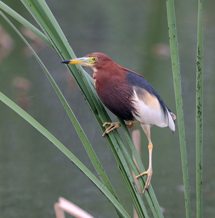 虹膜褐色;嘴黄色(冬季);腿及脚绿灰色。通常无声,争吵时发出低沉的呱呱叫声。栖息于稻田、池塘、沼泽、喜单只或3~5只结小群在水田或沼泽地中觅食,性不甚畏人。食性以鱼类、蛙、昆虫为主。