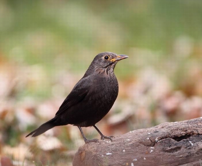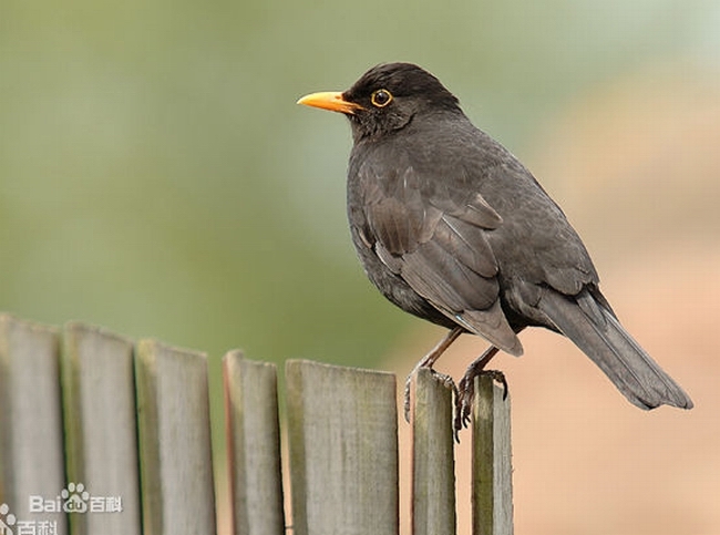 乌鸫(学名:Turdus merula):体长21-29厘米;雄性的乌鸫除了黄色的眼圏和喙外,全身都是黑色。雌性和初生的乌鸫没有黄色的眼圏,但有一身褐色的羽毛和喙。脚黑色。