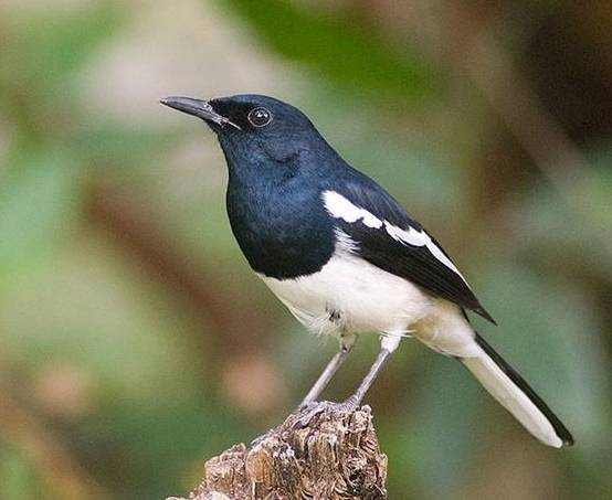 两性羽色相异,雄鸟上体大都黑色,翅具白斑,下体前黑后白。