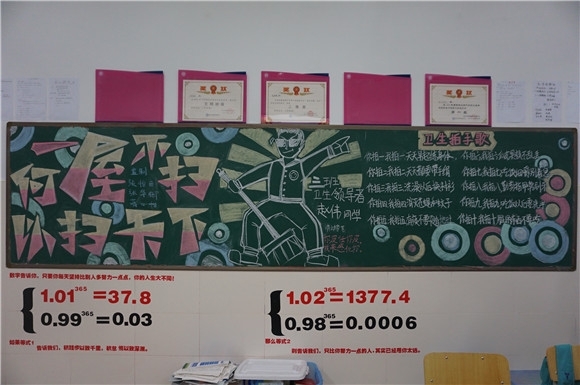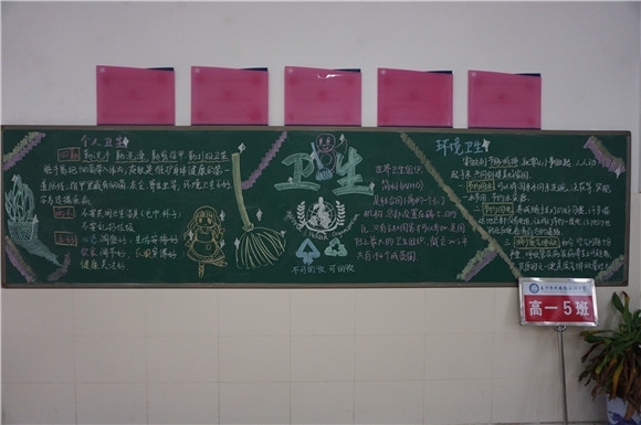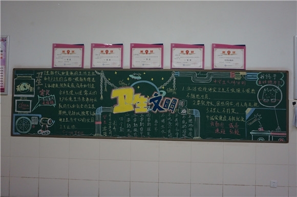 为了丰富校园、班级文化生活,促进学生参与卫生文明校园创建活动的积极性,加强学校德育建设,学校教育处、督导室特举行以“强卫生素养,促班级形象”为主题的黑板报评比活动。