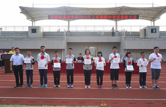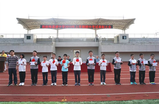 表彰大会由初一年级组长罗晖主持,先后对在4月29、30日举行的期中考试中取得优秀成绩的学生授予 “全A之星”、“前100强”、“单科王”、“进步之星”称号,以及对各班优秀班干部、文明之星等表现突出的学生进行了表彰。