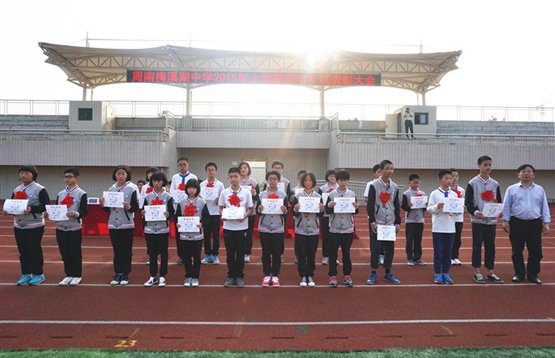 5月6日下午,我校全体师生在田径场隆重举行2015上学期期中考试表彰大会。我校校长叶双秋、书记曹共平、副校长王剑湘、赵忠科出席了此次大会。