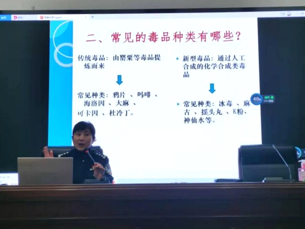为加强对中学生禁毒教育的力度,我校专门请来长沙市岳麓区禁毒警官为同学们进行禁毒知识宣讲。通过图片解读、互动抢答等多种形式,禁毒警官生动形象地向同学们介绍了什么是毒品,常见毒品以及新型毒品有哪些,并且通过社会典型案例让同学们深刻体会到毒品的危害,它不仅毁灭自己,更会祸及家庭、危害社会。因此,作为一名中学生,不仅要坚决抵制毒品,而且要知道如何抵制毒品,如何学会辨别吸毒人员,如何识别制毒窝点等。本次讲座不仅拓宽拓深了学生对禁毒知识的了解,更是坚定了学生抵制毒品的决心。