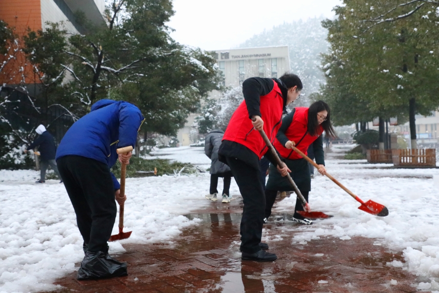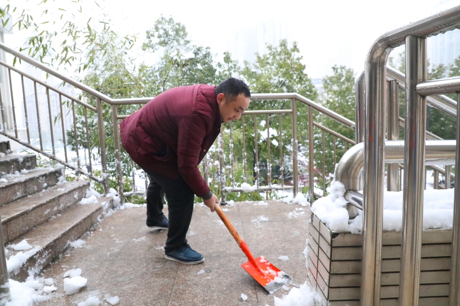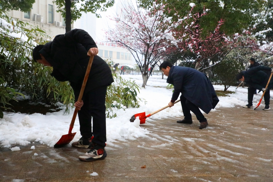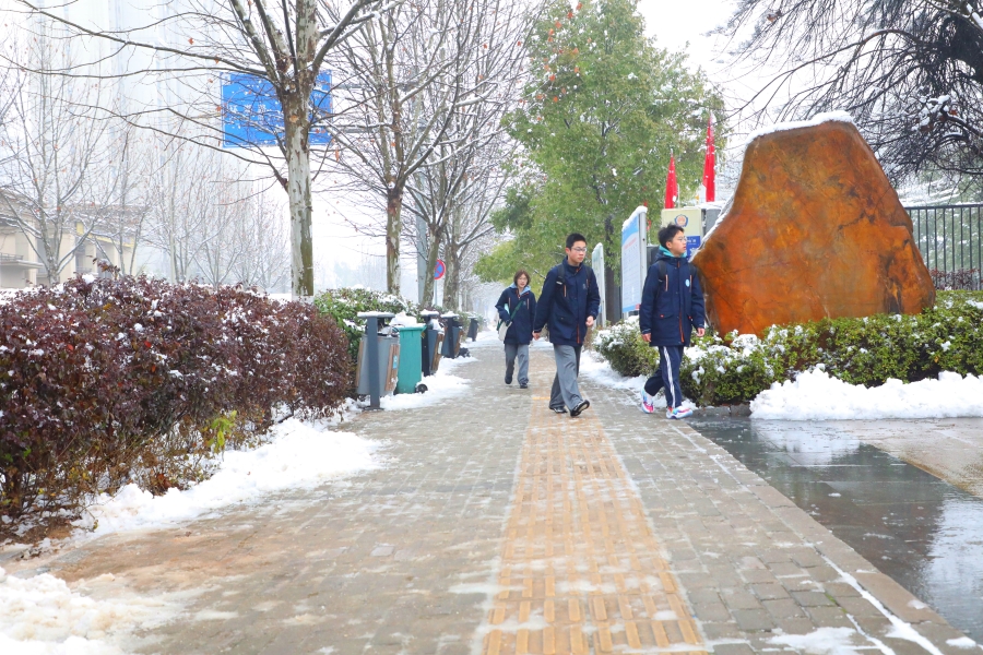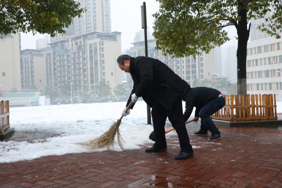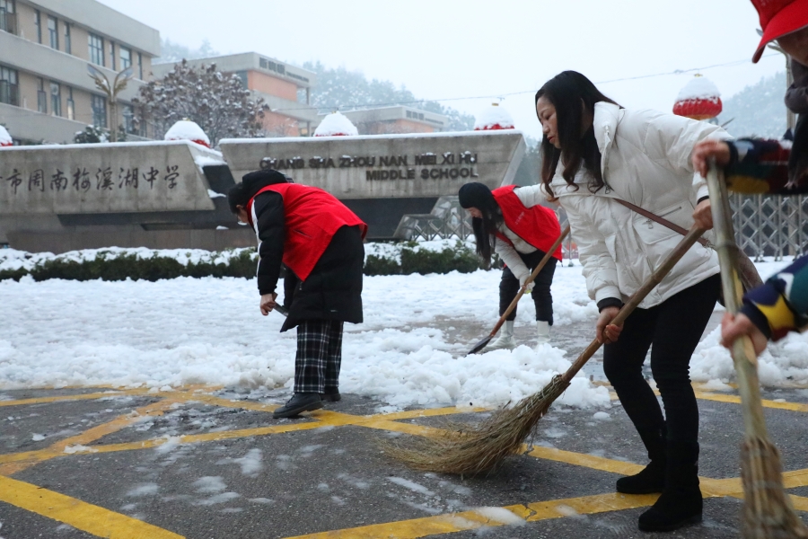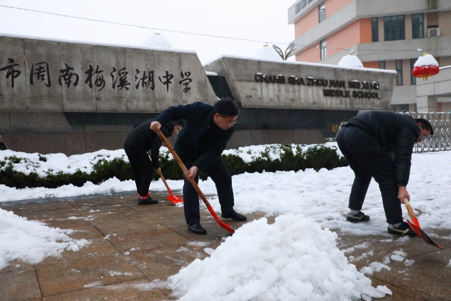 温情融积雪 爱意满校园 | 周南梅溪湖中学2022年铲雪除冰行动纪实 来源: 发布时间:2022-02-23 19:00:56 浏览次数: 次 【字体:小 大】 2月23日早上6点50,周南梅溪湖中学校长叶双秋、党委书记曹共平、副校长王晓红、副校长王剑湘组织学校教职工积极开展铲雪除冰行动,畅通校园道路、消除安全隐患,确保学校的正常教育教学秩序。 学校领导班子率先垂范,师生齐心,家长参与,积极铲雪,一条条充满温情的安全之路映入眼帘,为师生的出行提供了便利。 编辑:李人扬一审:马冬晴二审:曾维成三审:叶双秋 终审:周梅 分享到: 【打印正文】