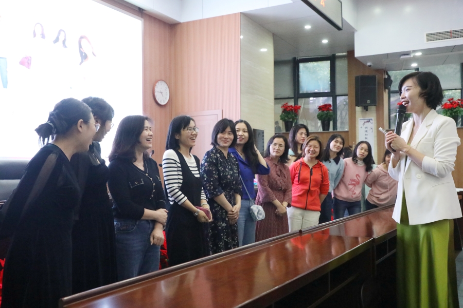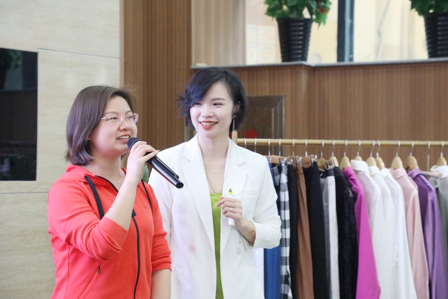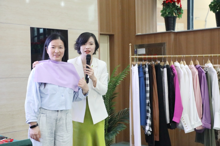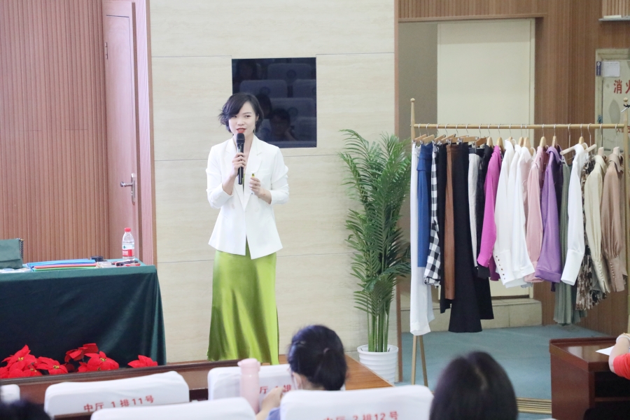 除了理论知识的讲授,肖老师还邀请老师们上台互动,根据女教师的不同着装,重点讲解了什么类型的衣物才能更衬肤色,以及如何搭配色彩才能穿出自己的品味。