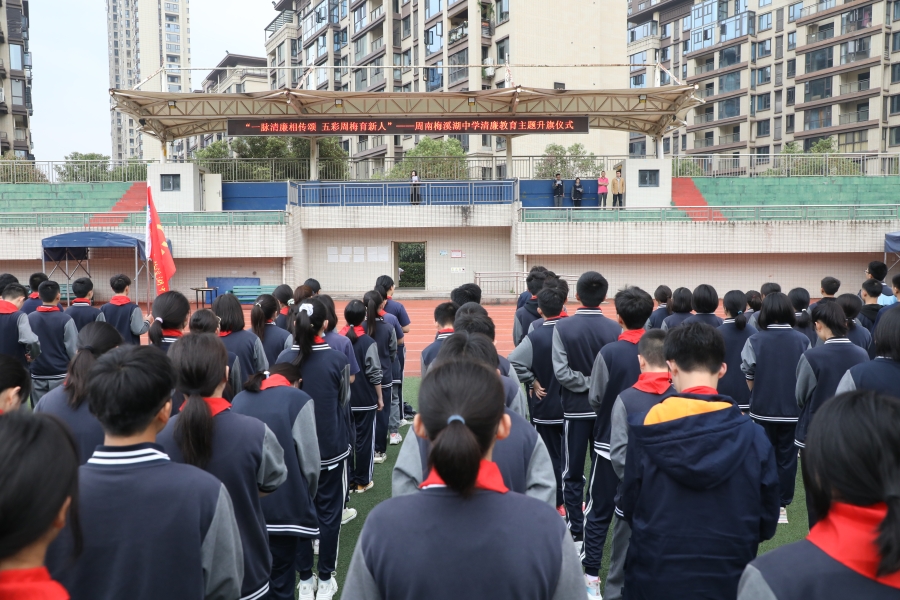 “一脉清廉相传颂,五彩周梅育新人”——周南梅溪湖中学清廉学校建设工作系列报道(二)主题升旗仪式