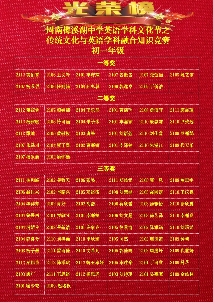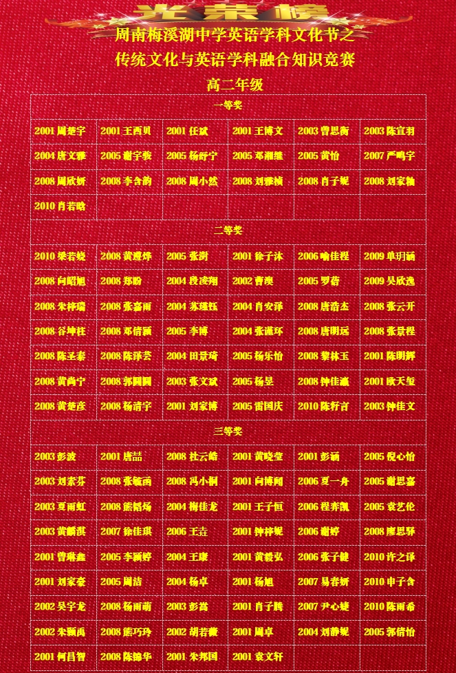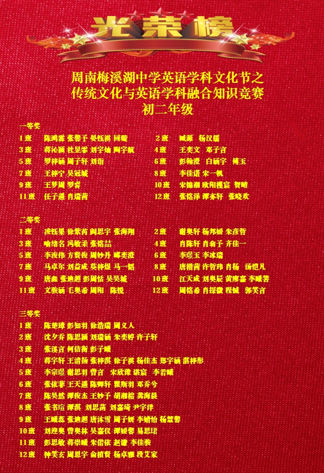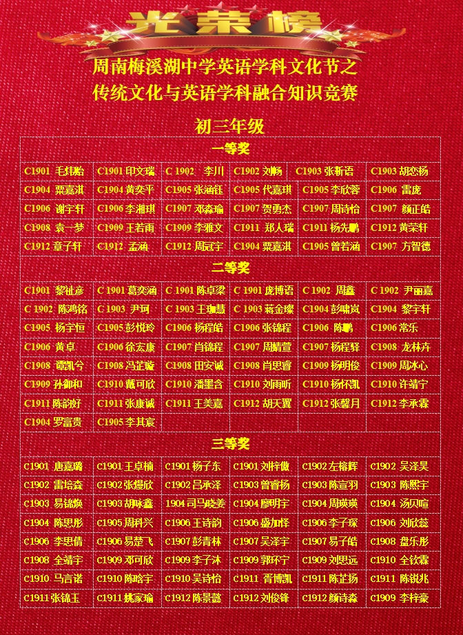这次比赛极大丰富和活跃了同学们的校园文化生活,并有益于学生扩大视野,培养世界意识。传统文化与英语的融合知识积累,绝不是轻而易举的,从诗词到习俗,需要循序渐进积累,只有在生活中做到事事留心、时时关注、注重积累、放开视野,才能在本次比赛中脱颖而出。赛后,经过各位老师认真细致、公平公正的评判,各年级评选出了优秀学生名单。