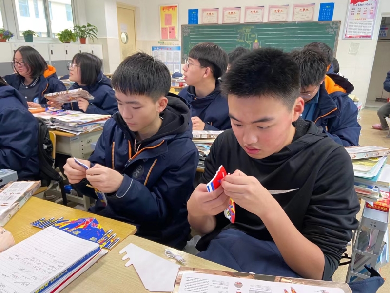 比赛开始之前,同学们在教室自行组装模型飞机,利用所学物理知识,在反复实践中让机身、机翼比例得当,把握投掷的角度和力量,使飞机飞得更高更远。