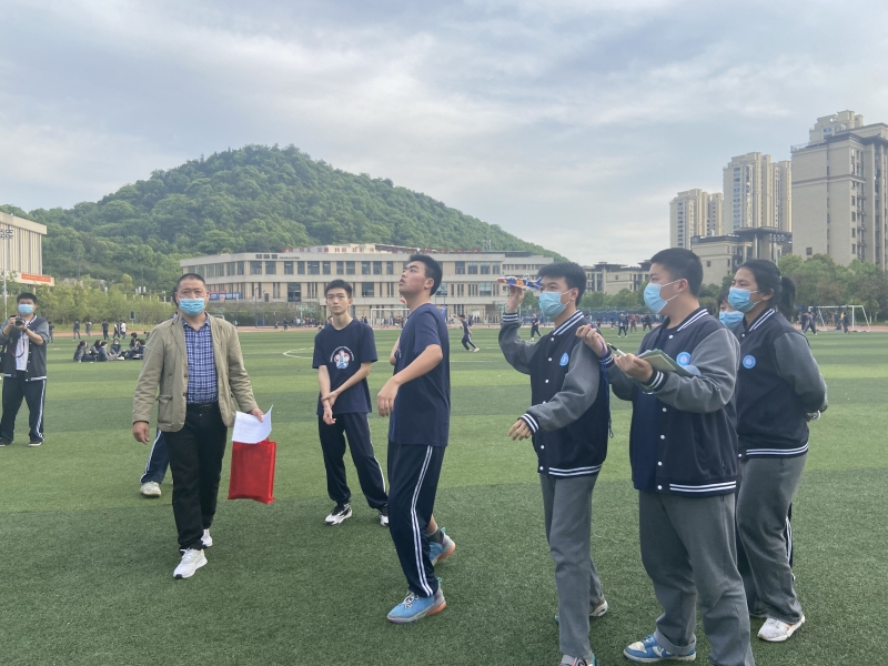 随后,同学们拿着组装好的飞机模型来到田径场,跃跃欲试。“比赛开始!”彭友云老师一声令下,模型飞机脱手而出,满载着同学们的梦想,稳稳起航,振翅翱翔。有的扶摇直上,有的一往无前,有的低空盘旋……千姿百态,仪态万千。周围同学的目光被飞机牵引,他们情不自禁因飞机高远飞行而赞叹喝彩,不由自主因飞机急速坠地而唏嘘叹息。参加比赛的陶瑜同学说:“通过这个活动不仅增长了知识,而且放松心情减缓了压力。”