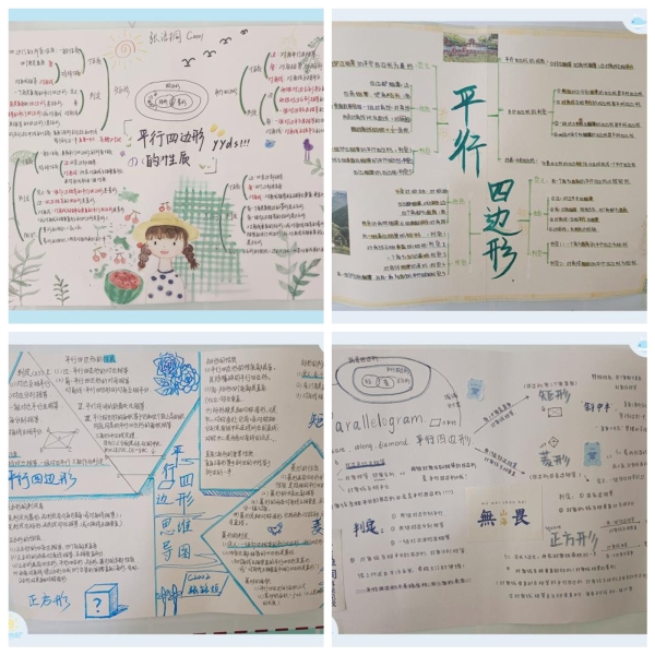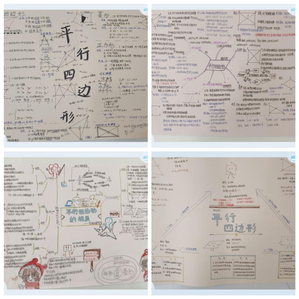 数学思维导图是记忆数学非常好的方式,让学生根据对单元知识的理解画出思维导图,既能启发学生的创新思维和发散思维,也能起到对单元知识巩固复习、加深理解的作用。思维导图要求字迹工整,体系清楚,框架完整;设计新颖,配图精美;内容丰富,并有一定拓展延伸。初二数学组的评委老师们按照以上标准评选出优秀作品。