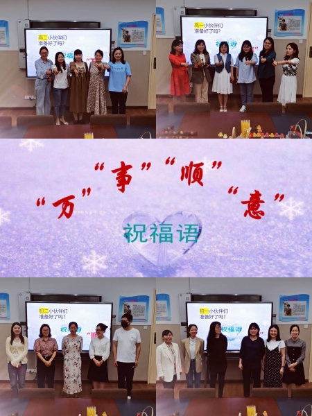 一片丹心育桃李,三尺讲台写春秋。双考在即,高三和初三团队都在紧锣密鼓地备战中。为加强团结协作,展现周梅英语人精神的传承,5月25日下午,秦兰静英语名师工作室在5.25心理健康日开展一年一度向高三、初三师生送祝福的活动。