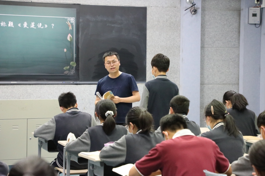 马冬晴老师从《爱莲说》标题入手,追问学生题目的含义,再借莲的特质追问君子的高洁品质,借陶渊明和周敦颐出世入世的孤独,引领学生培养正确的价值观。杨秀梅老师从诗题《茅屋为秋风所破歌》入手,让学生了解歌行体表达情感的作用,再从对比阅读中体会作者苦闷、穷困的生活状态和心忧天下的情感,此外还拓展“庐”、“厦”小篆体及其释义,比较与白居易诗歌创作的不同之处,拔高作者的家国情怀,加深学生对文本的情感理解。