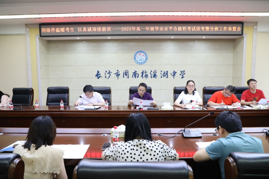 叶双秋校长指出,今年送考工作要严格落实疫情防控措施,扎实做好送考工作,不能含糊;要优化疫情防控应急预案,强化服务保障,把考生的交通出行、食宿安全、防暑降温、手机管理等工作落实到位;班主任要“察言观色”,关注学生心理变化。每位送考工作人员肩上都有担子、有压力、有动力,要做到各尽其职,共同作战。叶校长对本次新高二的分班原则进行了详细的介绍,他说,本次分班是组合式原则下的一次新探索,既是均衡分班,又引入了竞争机制,教师学生同时进入赛道开跑。他相信,我们能继续秉持同舟共济的理念,你追我赶,携手共进,迈入新征程。