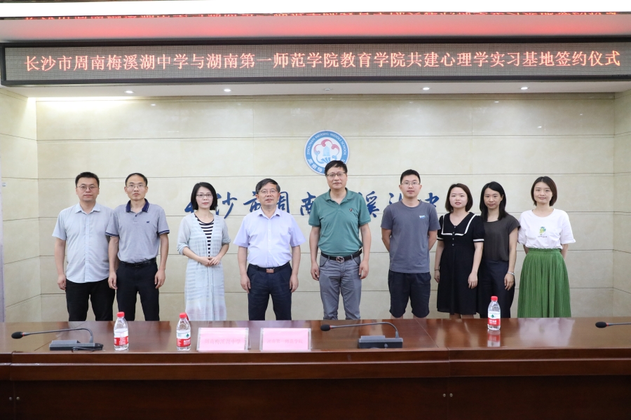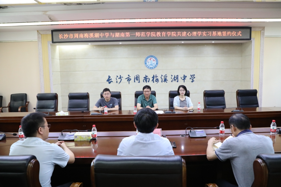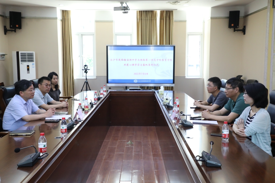 为共同培养高素质的基础教育教师,促进教育公平和义务教育均衡发展,2022年7月6日上午,我校与湖南第一师范学院教育学院在第一会议室举办实习基地签约仪式。出席签约仪式的有湖南第一师范学院教育学院党委书记刘澍心、副教授朱丹、实验员朱军成,我校校长叶双秋、办公室副主任兼团委书记马冬晴、学生成长中心副主任张宇、心理教师何园竹、刘芝玲、张沛琳。