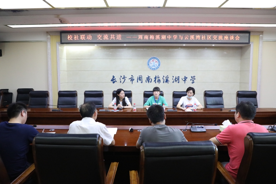 为了更好地加强学校与周边社区之间的互动和联系,健全“学校、社区”一体化的教育网络,共同谋划学校的长远发展,7月12日下午,周南梅溪湖中学在第一会议室召开社区、学校代表交流座谈会。云溪湾社区党总支书记、主任冷霞,社区居委委员黄莉、黄利平,周南梅溪湖中学办公室副主任兼团委书记马冬晴,学生成长中心副主任张宇、汤应宇,初一年级组长旷有元出席会议。