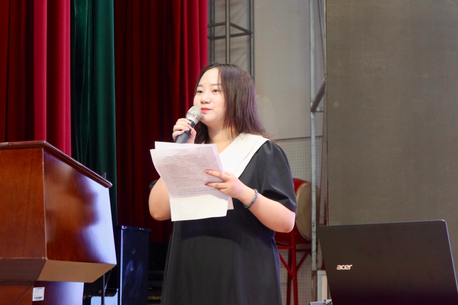 嵇组长以《同心同向同行,共育共建共赢》为主题,从重视家庭教育,构建和谐亲子关系;全力支持学校,构建紧密的家校关系;协同教师育人,推动互信的师生关系三个方面展开了分享。