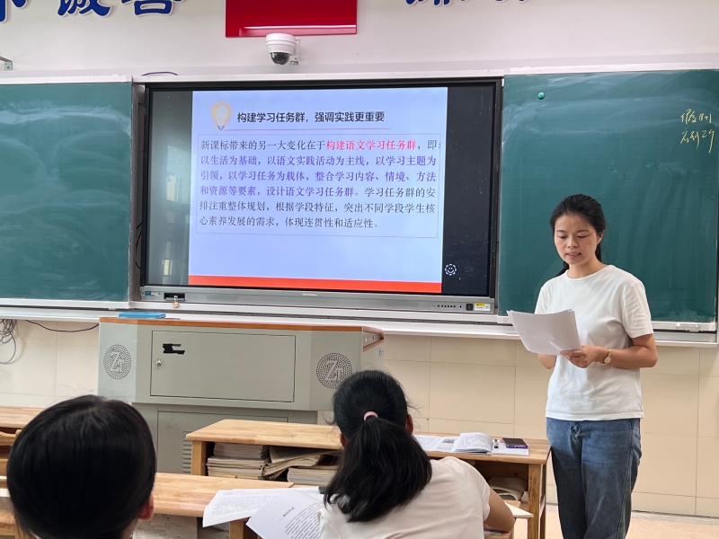 义务教育课程标准2022年版出炉,长沙2022年中考落下帷幕。在此背景下,初中语文教研组组织全体语文老师当场共同学习、研读新课标,并邀请四位老师从新课标解读、中考语文阅卷、中考语文备考三个角度做心得分享。在座老师在思维碰撞中受到启发。