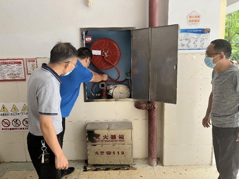 为认真贯彻落实长沙市《关于做好2022年秋季学期开学有关工作的通知》精神,确保校园安全稳定和新学期工作开展有序,2022年8月27日,我校安全主管副校长带领后勤保障中心、学生成长中心、保卫等有关部门负责人开展校园安全大检查。
