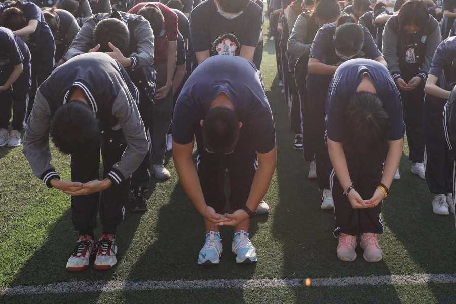 全体学生素整衣冠,端身立正