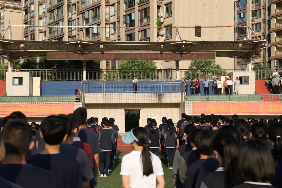 9月5日早上7点25分,我校在田径场举行浓情中秋月 梅苑颂师恩——2022年周南梅溪湖中学第二周主题升旗仪式。