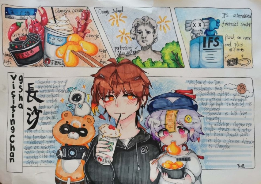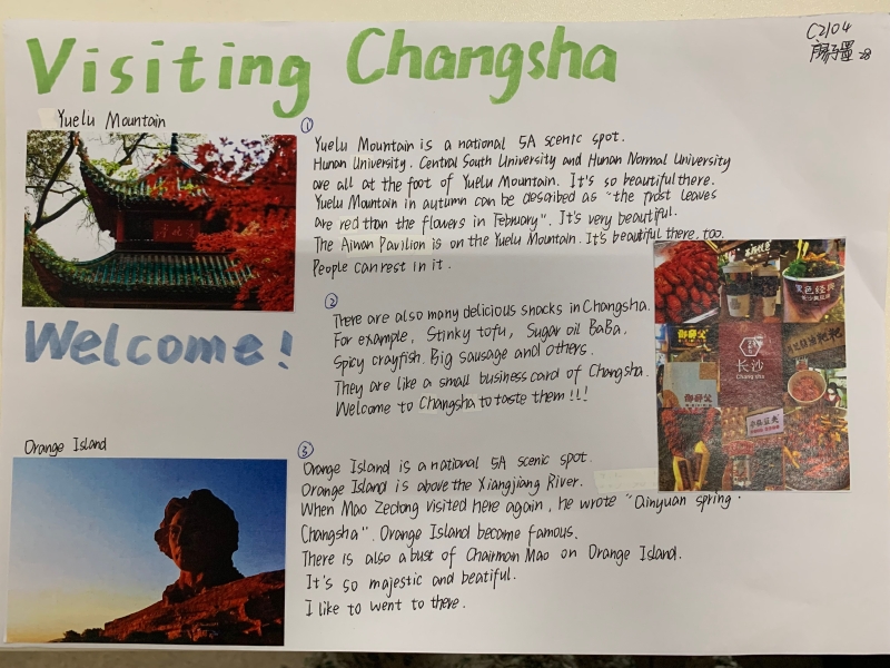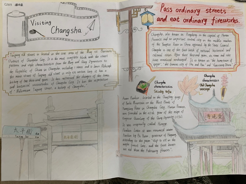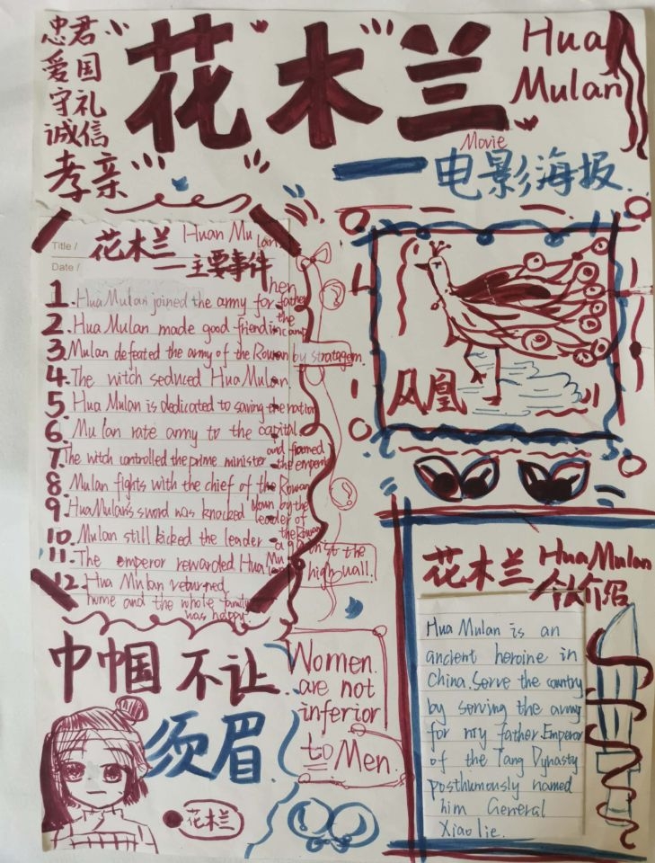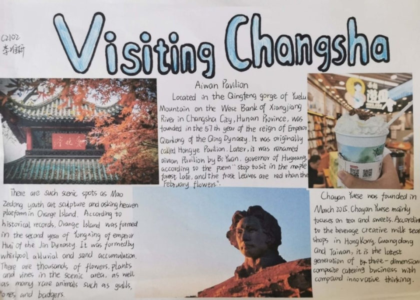 暑假拓展作业内容为: 1、赏析英文电影《花木兰》。(1)选择英语趣配音与小伙伴合作表演一段电影片段或歌曲。(2)英文电影《花木兰》内容设计电影海报。2、学生在自主复习整理一般过去时知识后,自行绘制思维导图,在对语法的整体理解上,扩展思维与逻辑能力,掌握科学的学习方法。3、游魅力长沙,讲长沙故事。(1)“Visiting Changsha”的主题海报,同学们利用所学英语知识向大众介绍长沙,用英语诉出长沙速度,讲好长沙故事。(2)用英语讲自己的暑假出游美丽长沙故事。请围绕“Visiting Changsha”主题,录制一段2-3分钟的英文演讲视频。