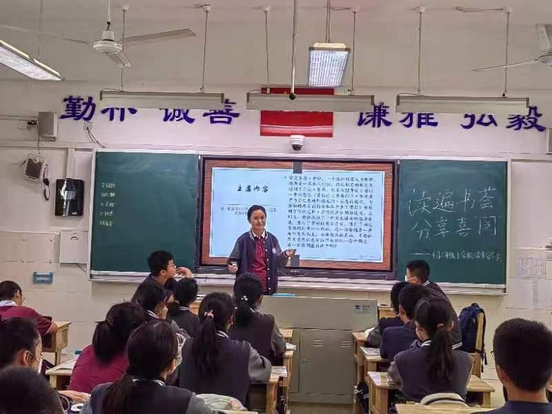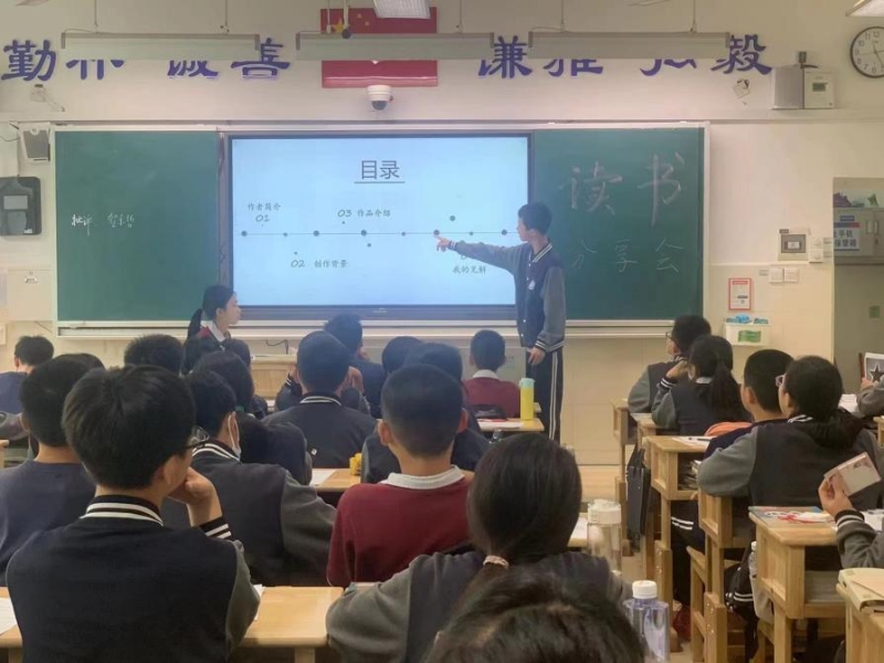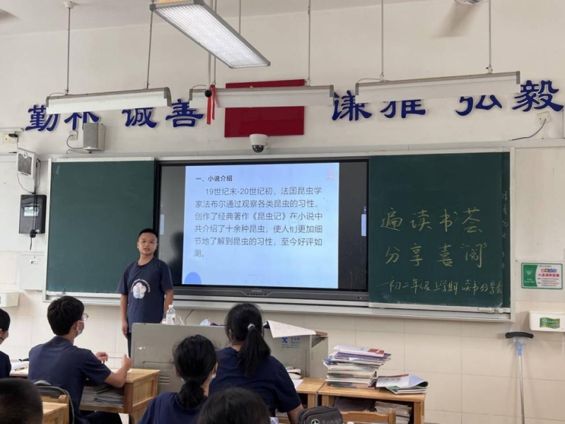 (通讯员 雷鸣) 古人说:“天下之事,利害常相半;存全利而无少害者,惟书。不问贵贱,贫富,老少!观一卷,则有一卷之益;观书一日,则有一日之益。”徜徉书海,与阅读相伴,其乐无穷。为提升学生综合素质,帮助他们树立正确的价值观、世界观,形成健全人格,初二语文组秉承着“好读书、读好书”的理念,大力推进整本书阅读,在开学第一周举办了此次读书分享活动,提供给学生展示阅读成果的舞台。