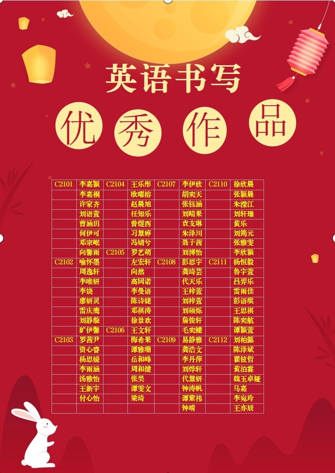 本次比赛为引导学生深入了解传统双节,贯彻“双减”政策精神,激发学生学习英语的兴趣和积极性,规范同学们的英语书写,培养良好的英语书写习惯,在听、说、读的基础上,丰富校园文化生活,营造学校的英语学习氛围,促进学生的全面发展,为同学们提供一个展示自我的舞台,同时更好地实践《新课标下中华优秀传统文化与初中英语教学融合的行动研究》课题。
