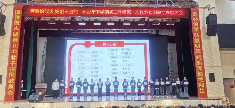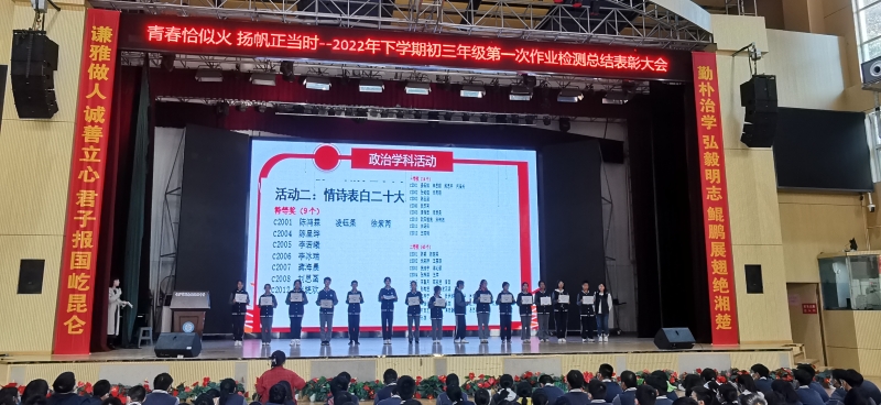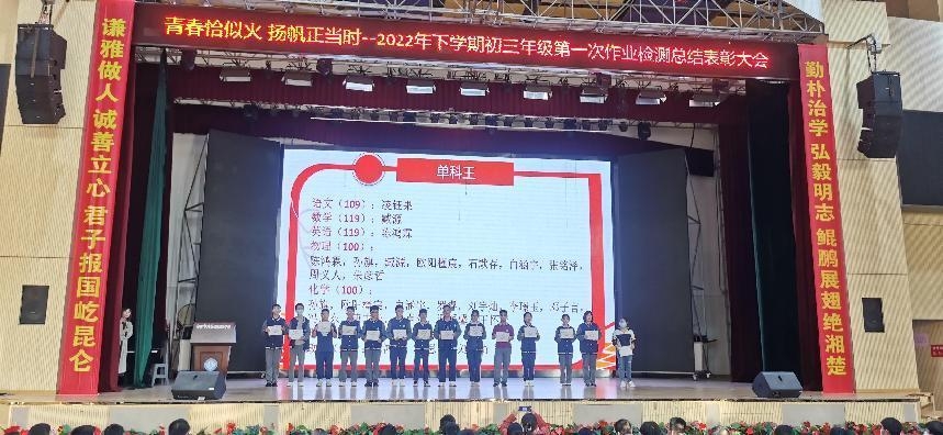 青春恰似火,扬帆正当时——2022年下学期初三年级第一次作业检测总结表彰大会