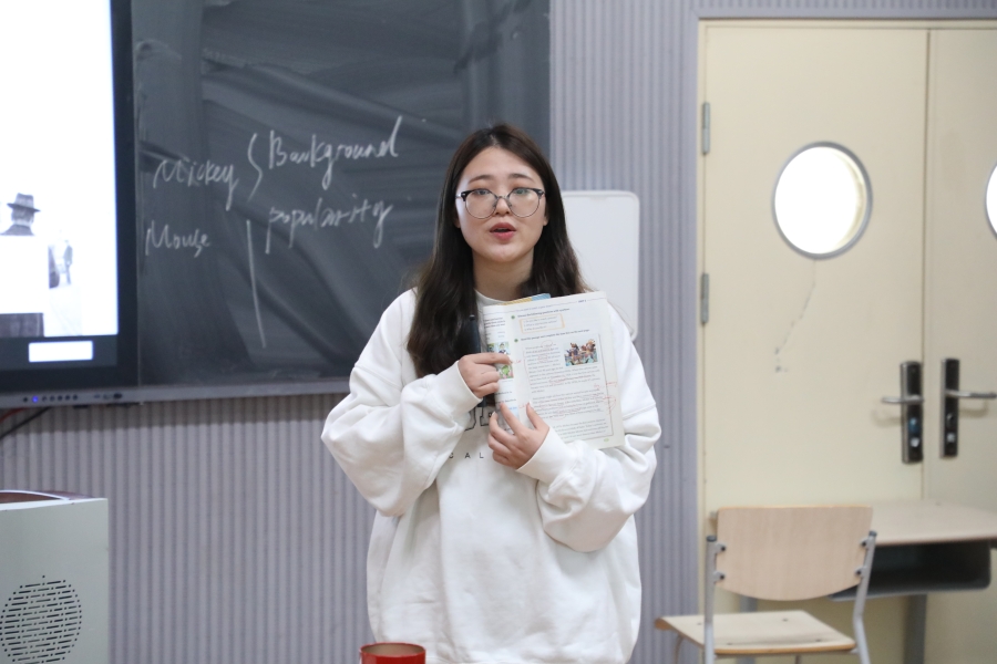 王愿老师以万圣节导入,邀请学生思考美国文化象征。利用课本原文首句导入文章的阅读环节,从而对文本进行解读,要求学生基于生活,设计一个自己的动画人物。