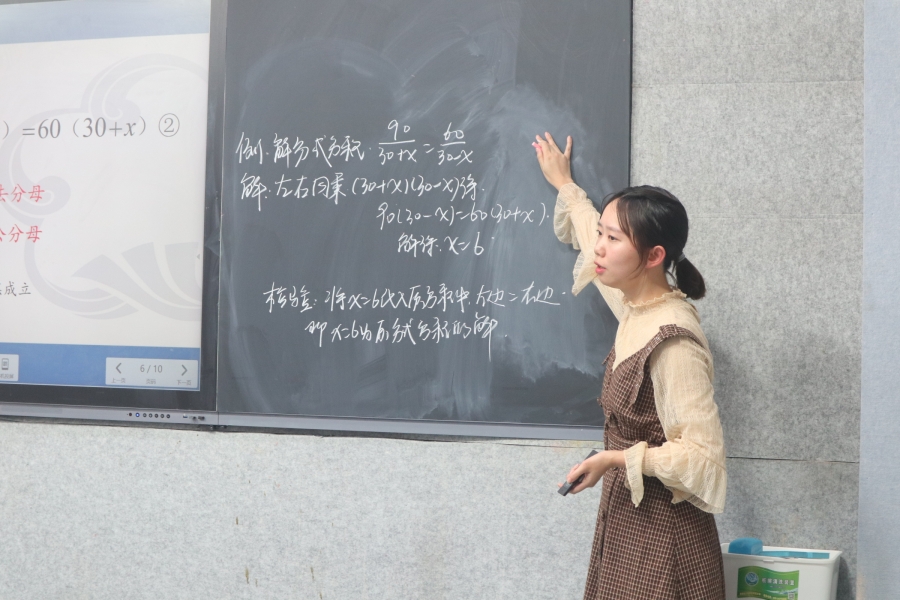 刘老师在教学方法上,采用类比渗透思想方法进行教学,通过与一元一次方程解法相比较,启发引导学生自主探究、归纳分式方程的解法,让学生既可以温习旧知识,又可以加深对新知识的记忆。同时采取必要的讲解和补充,再给与积极正确地引导和点拨,让学生更加熟悉该方法并学会熟练运用!