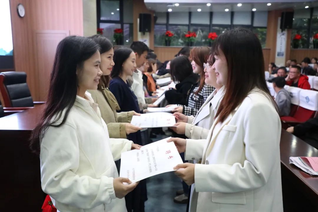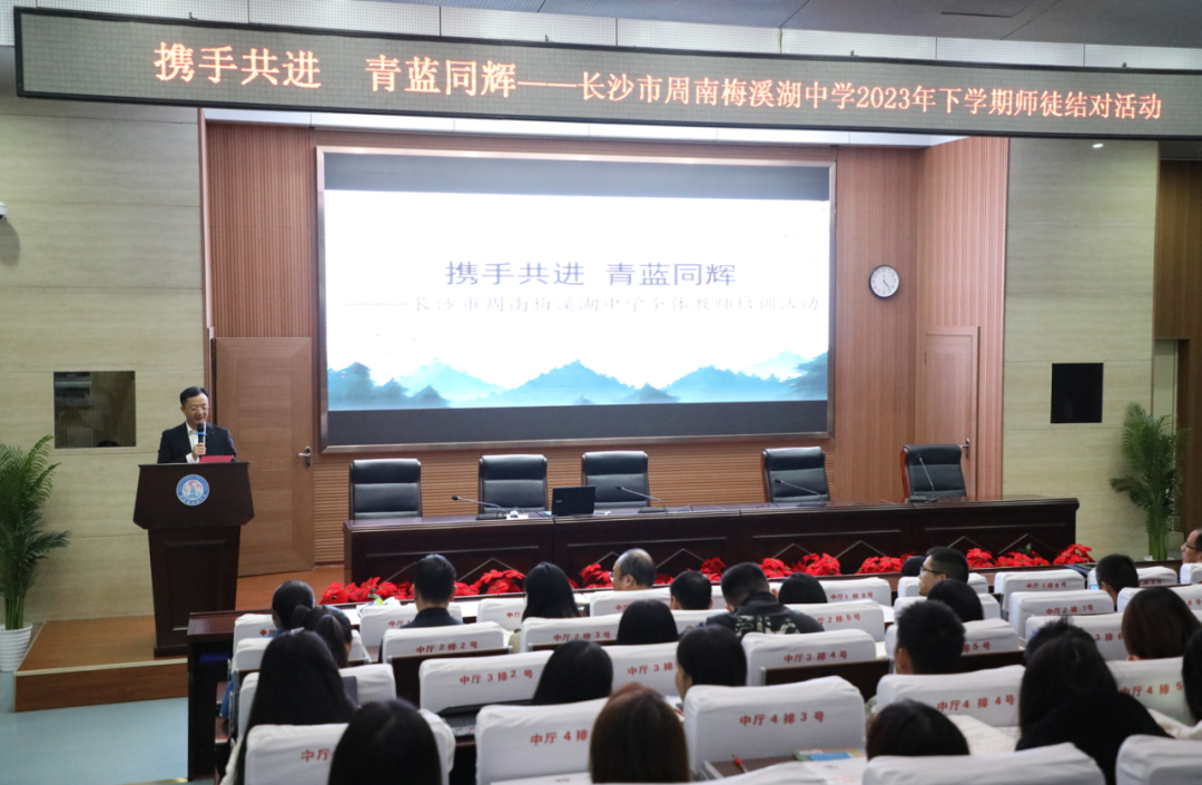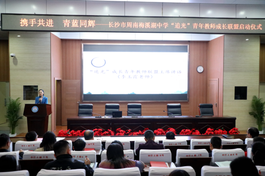 追随光、成为光、散发光 | 2023年下学期全体教师培训活动举行 来源: 发布时间:2023-10-09 23:55:38 浏览次数: 次 【字体:小 大】 为帮助青年教师逐步提高、尽快成长,进一步发挥名优教师的示范引领与“传、帮、带”的作用,10月9日下午4点,周南梅溪湖中学在笃行报告厅①举行全体教师培训活动,再次搭建师徒结对平台,并成立“追光 ”青年教师成长联盟,实现青年教师在师父的引领下、追光青年们的交流发展中、拔节成长。主持人:团委书记黄馨怡1“追光”青年教师成长联盟启动仪式01.曹共平书记宣读名单师者如光,微以致远;师者如舟,千里不殆。党委书记曹共平宣读顾问团名单与联盟工作小组成员名单。02.王晓红副校长、马海金书记颁发聘书副校长王晓红为顾问团全体成员颁发聘书。纪委书记马海金为联盟工作组成员颁发聘书。03.顾问团代表王青老师发言“第一次公开课、第一次获得家长肯定、第一次省市优质课比赛一等奖、第一次在北大核心期刊上发表文章、第一次受邀外出讲座、第一次培养出了北大的学生,这些都成为了自己追光路上的脚印...”王青老师从自身十余年的工作经历出发,通过找到属于自己的“光”,明白并且坚信只有真正尊重孩子,教育才会产生影响,提出青年教师需要有“光”、“追”光。他认为“追”光要有坚定的职业信念、要有接续奋斗的行动、要有敢于创新的睿智,希望青年教师在“追光”青年教师联盟,找到指引自己职业生涯的那束光。04.联盟主席李玉霞老师发言“今天追光青年教师联盟的成立是我们学校的一件大喜事,将为我们老师搭建一个更好的成长舞台,让我们在周梅蒸蒸日上、日新月异的光影里一路追随光、成为光、散发光。”李玉霞老师始终坚信学校搭建的专业成长平台是一束明亮的光,能让我们更好的追随光;老师们和谐相处、互帮互助的良好氛围是一束温暖的光,能让我们更好的成为光;莘莘学子们勤学好问、笃学上进的气氛是一束希望的光,能让我们更好的散发光。最后希望我们勇于创新,踔力奋发、不负众望,让周梅“追光”青年教师 联盟绽放新的光芒!22023年下学期师徒结对活动仪式01优秀徒弟代表李雨婷老师发言陶行知先生说:“要想做好教师,最好的是和好教师做朋友。”师徒结对不只是一个仪式和一纸聘书,更是一个难得的机会和一段珍贵的缘分,李雨婷老师回顾了与师父齐素雅老师在工作和生活上的美好点滴,感谢师父毫无保留地解决困惑,给予帮助。“这段缘分让我拥有了一位照亮前路的提灯者,还给我树立了一个职业生涯的榜样。”师与徒,是学术上相互搀扶的行者,亦是情感上共振共鸣的同伴。相信青蓝工程中的每个徒弟都能遇到自己成长道路上的启蒙光源,在光芒下思考,向光明去前行!02优秀师父代表齐素雅老师发言只此青蓝,不只青蓝。齐素雅老师为她和李雨婷老师的师徒组合冠名“只此青蓝”。师徒之谊,是一种缘分,更是一种修行;师徒缔结,是延续,更是一种跨越。作为徒弟成长路上的见证人,陪伴者,齐老师肯定了李老师的成长与进步,形成了自己的教学风格。师徒俩共同尝试打造个性化、清新化语文课堂,实现打动人心、春风化雨的教学效果,在教学之路同心、同梦、同拼搏,致力于做有用、有趣、有情谊的语文人。最后,齐老师感谢周梅这片热土给我们涂上了心灵的底色;感谢周梅校园里浓浓的教育情怀浸润的学习之风。相信在今后的工作中会继续互帮互助,互学互鉴,让青蓝互相成就,走向共生!03校长吴伟宣读师徒结对名单桃李丹青育新人,青出于蓝胜于蓝。吴伟校长宣读 2023年下学期师徒结对16组师徒名单,希望青年教师不仅传承师父的知识和技能,更重要的是传承育人的智慧与情怀,推动教育强校建设行稳致远。04呈递聘书、师徒合影16名徒弟面向师父,以自己的诚心、虚心、决心为聘,向师父恭敬地呈递这一份聘书。3微讲座吴伟校长开展微讲座,传达了10月8日国家义务教育质量监测结果分析暨基础教育质量提升计划推进会会议精神。结合本周的随堂听课效果,吴伟校长分析了学校2022年高中教育综合评价报告,肯定了学校作为优质高中的增值水平,还根据学校的实际情况,进一步提出教育教学的发展方向和提升举措。桃李之教,薪火相传。“青蓝工程”活动、“追光 ”青年教师成长联盟为青年教师搭建了快速成长的阶梯,是我校教师队伍建设的重要抓手。我们相信,师徒结对,携手并进,一定会促进我校教育教学质量的进一步提升。 —END—编辑:李人扬一审:李艳波、许 晴、符豪良二审:李冠男三审:曹共平、吴 伟 终审:周梅 分享到: 【打印正文】